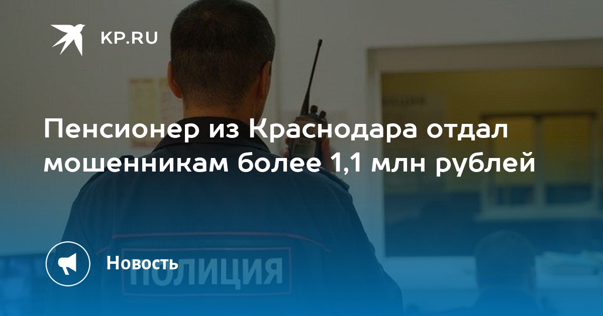Пенсионер из Краснодара отдал мошенникам более 1,1 млн рублей. Возбуждено уголовное дело, сообщили в пресс-службе городского Управления МВД.